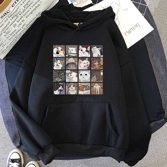 Felpa Oversize con Stampa Meme Gatti Divertenti